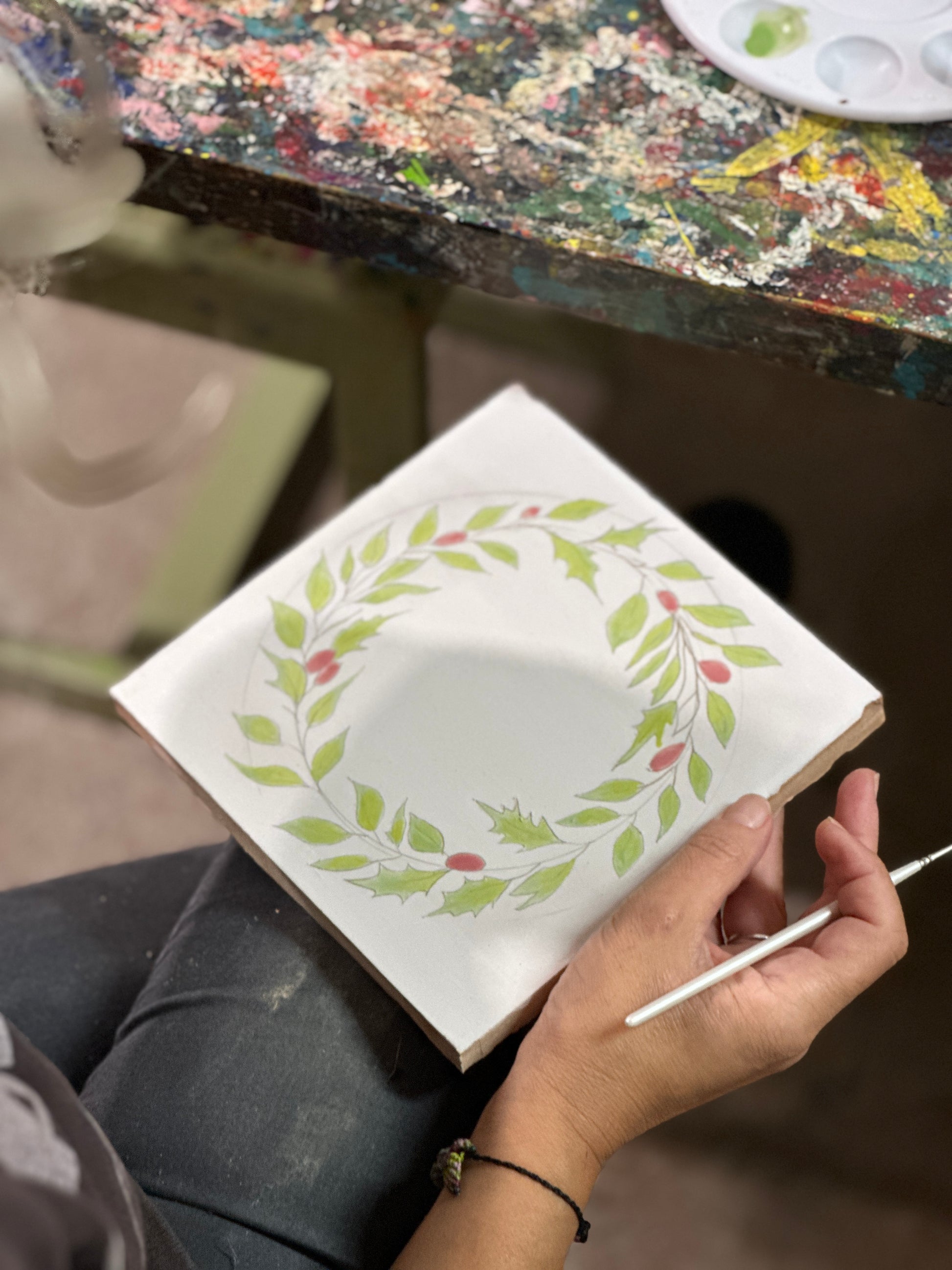 Preciosa tabla de Navidad ideal para estas fechas tan bonitas. Pintada a mano con detalles navideños y madera de fresno.